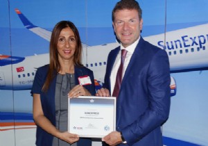 SunExpress’in merkezi Antalya’da gerçekleştirilen törende, SunExpress Genel Müdürü Jens Bischof’a sertifikayı Türkiye, Azerbaycan ve Türkmenistan’dan sorumlu IATA Alan Müdürü Funda Çalışır verdi.