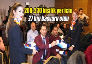 Bir süre önce kabin memuru alımı için duyuru yapan Sunexpress Havayolları’na bu süre içerisinde 27 binin üzerinde başvuru oldu. Başvuruların çok olması nedeniyle adaylara internet üzerinden İngilizce yeterlilik sınavı yapıldı.