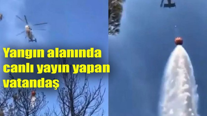 Denizli’nin Pamukkale ilçesinde meydana gelen orman yangınını söndürmek için alana giden bir vatandaş, sosyal medyasında canlı yayın yaptığı sırada yangın helikopterinin boşalttığı suyun altında kaldı