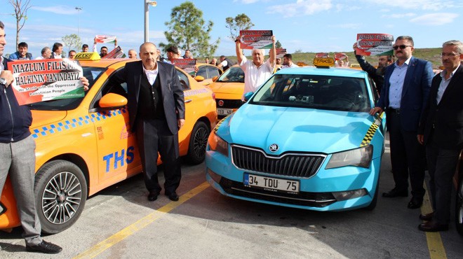 İsrail’in Gazze’ye yönelik saldırıları her geçen gün artarak devam ederken, Türkiye’nin bir çok yerinde yapılan protestolara İstanbul Havalimanı Taksiciler Kooperatifi üyesi taksiciler de katıldı. İstanbul Havalimanı Taksicileri ‘Filistin halkının yanındayız’ yazılı afişlerle İstanbul sokaklarında dolaşacak.