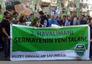 Kuzey Ormanları Savunması'nın (KOS) çağrısıyla dün akşam Taksim Tünel Meydanı'nda toplanan yüzlerce kişi, sloganlarla Galatasaray Meydanı'na yürüyerek, Başbakan Erdoğan'ın temelini attığı 3'üncü havalimanını protesto etti.