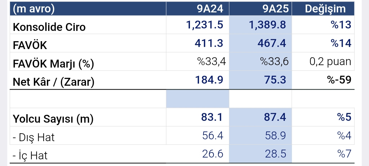 Çeşitlendirilmiş portföy yapımız, sürdürülen ticari iyileştirmeler ve temkinli sermaye tahsisi yaklaşımımız olası krizlere karşı dayanıklılığımızı pekiştiriyor. Döviz kurlarındaki dalgalanmaları ve jeopolitik gelişmeleri yakından takip ederken; operasyonel mükemmellik, yolcu deneyimi ve değer odaklı büyüme stratejilerimizi önceliklendiriyoruz. Tüm çalışanlarımıza, hissedarlarımıza ve iş ortaklarımıza en içten teşekkürlerimi sunuyorum” dedi.