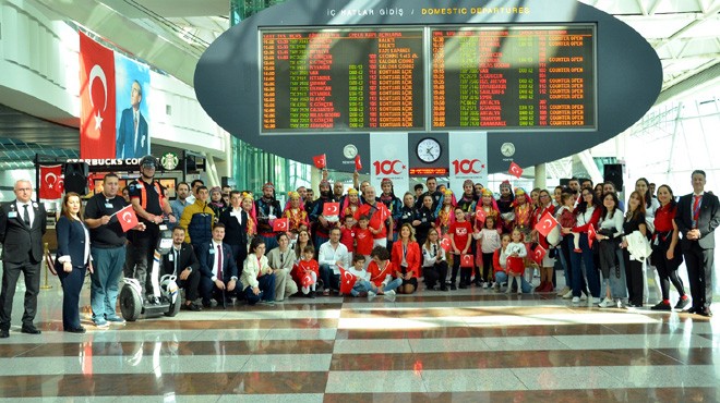 Havalimanı yolcu salonları bayraklar ve ay yıldızlı balonlarla süslendi. Tüm terminallerde bando eşliğinde milli marşlar seslendirilirken, folklor ekipleri bölgelere ait danslarla izleyenleri büyüledi.