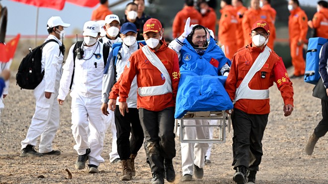 Çin'in Uzay İstasyonundaki görevlerini tamamlayan taykonotlar Fey Cunlong, Dıng Çingming ve Cang Lu’yu taşıyan Şıncou-15 uzay kapsülü, sabah saatlerinde Gobi Çölü’ndeki Donfıng sahasına indi. Uzayda 180 gün geçiren taykonotların sağlık durumlarının iyi olduğu bildirildi.
