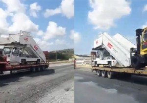 Cumhurbaşkanının Gaziantep mitinginden sonra ilk kez ineceği yeni havalimanında uçağa hizmet verecek merdiven ve diğer apron araçları TIR’lara yüklenerek karayolu ile yeni havalimanına taşındı.
