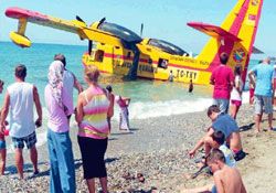 Onlarca turistin bulunduğu Payallar beldesinde dün sabah saatlerinde su almak için denize inen yangın söndürme uçağı kalkış yapamayınca uçağın pilotu kıyıya yanaşmak zorunda kaldı. Olayı meraklı gözlerle izleyen tatilciler "Uçak adeta dökülüyor, bu uçak nasıl su taşır ve uçar" yorumunu yaptı.