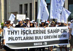 THY çalışanları dün Çağlayan Adliyesi önünde bir basın açıklaması yaparak, THY yönetiminin grev kırıcı uygulamalarını ve konuyla ilgili açılan davada gelinen son noktayı değerlendirdiler.