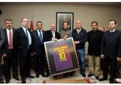 EMİT Fuarı’na katılan Arjantin Turizm Bakanı Carlos Enrique Meyer’i dün gece Bakü’ye uğurlayan Kotil, konuk bakana üzerinde isminin yazılı olduğu ve Arjantinli yıldız Messi’nin de imzaladığı Barcelona formasını hediye etti.