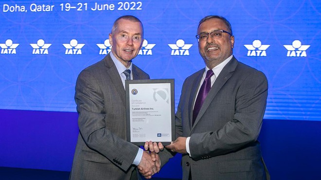 Türk Hava Yolları adına sertifikayı Yönetim Kurulu ve İcra Komitesi Başkanı Prof. Dr. Ahmet Bolat, Katar’ın başkenti Doha’da düzenlenen Uluslararası Hava Taşımacılığı Birliği (IATA) Yıllık Genel Kurul Toplantısı ve Dünya Hava Taşımacılığı Zirvesi’nde aldı. IATA’nın (Uluslararası Hava Taşımacılığı Birliği) dünyanın dört bir yanındaki havayolu şirketlerini 8 farklı başlıkta, 92 adet gereklilik maddesiyle denetlediği sürdürülebilirlik odaklı programda şirketler, Liderlik, Çevre Yönetim Planları, Sistem ve Dokümantasyon, Geliştirme faaliyetleri çerçevesinde değerlendiriliyor.