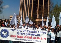 İŞÇİLER THY ÖNÜNDE TOPLANDI