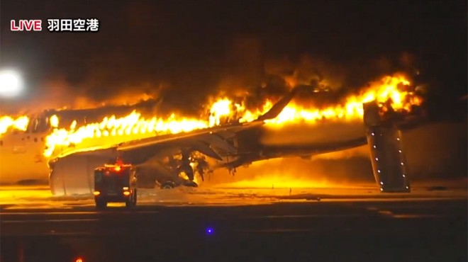 Gelen yeni bilgilere göre JL516 sefer sayılı Japan Airlines'a ait Airbus A350-941 tipi uçağın Tokyo Haneda Havalimanı pistine teker koyduktan sonra Sahil Güvenliğe ait olduğu belirtilen bir başka uçağa çarptığı ve yangın çıktığı anlaşıldı. İtfaiye ekipleri alevlere müdahale etti. Yangn söndürme çalışmaları sürüyor.