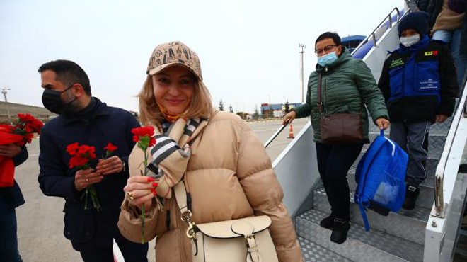Moldova’dan direkt uçuşla Nevşehir'e gelen 180 turist, çiçeklerle karşılandı