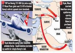 İstanbul-Kuveyt seferini yapan Türk Hava Yolları’na ait yolcu uçağının, Irak hava sahası içinde Amerikan savaş uçakları tarafından rotasının değiştirildiği belirtildi.