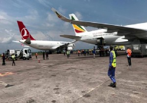 Kongo'da Turkish Cargo uçağına taksi yapmakta olan Etiyopya Havayolları uçağı çarptı