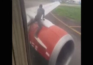 Nijerya İkeja kentindeki Murtala Muhammed Havaalanında heyecanlı dakikalar yaşanmasına neden olan bir olay meydana geldi. Lagos'a gitmek üzere pistte kalkış için hazırlanan ve motorları çalışır durumda olan Azman Air'e ait uçağın kanatlarına bir adam tırmandı. Uçağın kabinine girmeye çalışan kişi yolcular arasında da paniğe yol açtı. Durumu farkeden pilot motorları durdurdu. Uçağa gelen güvenlik görevlileri, kimliği açıklanmayan kişiyi gözaltına aldı.