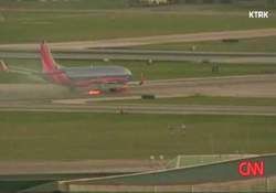 Lastiğin patladıktan sonra alev aldığını belirten yetkililer, yangının söndürüldüğünü, yolcu ve mürettebatın ise acil durumlarda kullanılan kaydıraklarla tahliye edildiğini bildirdi.