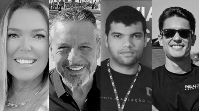 Kaza kurbanlarının iş insanları Déborah Belanda Ortolani ve Luis Antonio Ortolani ile pilotlar Nelio Maria Batista Pessanha ve Renan Eduardo Saes olduğu açıklandı.