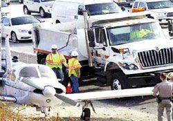 Piper tipi tek motorlu uçağı kullanan doktor Ken Gheysar (48), pazar geceyarısı eşi ve iki kuzeni ile birlikte seyahat ediyordu. Yakıtın bittiğini fark eden Gheysar, bunun üzerine gözüne kestirdiği ilk geniş alan olan otoyola inmeye karar verdi. Bunun üzerine 20 yıllık pilotluk lisansı bulunan Gheysar, çok az aracın bulunduğu otoyola başarıyla iniş yaptı. Kaldırılmayı bekleyen uçağın kanatlarından birine kamyonet çarptı. Fakat, olaydan kimse zarar görmedi.