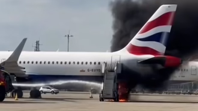 Londra Heathrow Havalimanı'nda park halindeki British Airways uçağına bağlı bulunan bir merdiven aracında yangın çıktı. Alevler itfaiyenin müdahalesiyle kısa sürede söndürüldü