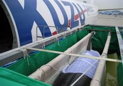Uçuşu gerçekleştiren Kaptan Nuri POÇAN’dan aldığımız bilgiye göre; yunusların yaşı 7 ilâ 14 arasında değişiyordu. Her biri 1.400 kilogram civarında ağırlığa sahip olan yunuslar, uçuş operasyonu sırasında sakinleştirildiler; ancak uyutulmadılar ve beslenmediler de… Özel konteynerlerin içine asılan ıslak branda hamaklar içinde taşındılar. Derilerinin kurumasını önlemek için üstleri, jel şeklindeki özel nemlendirici ile kaplandı ve sürekli ıslak kalması sağlanan bezlerle örtülü tutuldu. Islatmada kullanılan su ise buz ile soğutuldu.