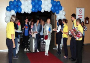 Muğla’nın Dalaman ilçesine Ukrayna'dan iki farklı uçakla gelen yaklaşık 400 turist çiçeklerle karşılandı