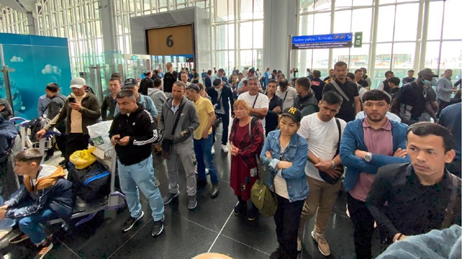 Türkmenler, günlerdir İstanbul Havalimanı'nda Türkmenistan Havayolları'na ait ofisin önünde bilet bulabilmek için bekliyor. Uzun kuyruklar oluşturan yolcular, zaman zaman şirket yetkilileriyle de gerginlik yaşıyor.
