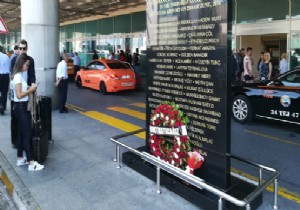 Dış Hatlar Terminali geliş katında hayatını kaybedenler anısına dikilen anıta sabah saatlerinde Üzerinde ‘Unutmayacağız’ yazısı bulunan çelenk bırakıldı.