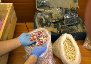 Uyuşturucu hapların cam lavabolar içindeki süsleme için kullanılan renkli taşların arasına saklandığı tespit edilirken operasyon kapsamında 2 şüpheli gözaltına alındı. Edinilen bilgilere göre Uyuşturucu ile Mücadele Şube Müdürlüğü ekipleri tarafından Atatürk Havalimanı'nda ve bir kargo şirketine uyuşturucu operasyonu düzenlendi. Havalimanında yapılan operasyonda 5 kilo 711 gram eroin ile 39 kilo 150 gram 'khat' bitkisi ele geçirildi. Polis ekiplerince Küçükçekmece'de bir kargo şirketine gerçekleştirilen operasyonda ise, Suudi Arabistan'a ahşap sandık içine yerleştirilerek sevk edilmek istenen ve renkli taşlarla süslenmiş 4 cam lavabo bulundu. Söz konusu lavaboların orta kısmına süsleme için döşenen renkli taşları inceleyen polis, süs taşlarının arasına 159 bin 80 captagon hap karıştırıldığını ortaya çıkardı. Polisteki işlemlerin ardından adliyeye sevk edilen zanlılardan 1'i tutuklanırken, diğerinin adli kontrollü olarak serbest bırakıldığı kaydedildi.