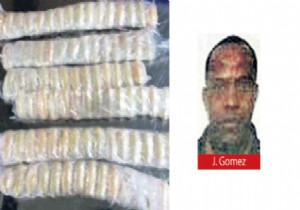 Gomez, X-Ray'den geçerken cihaz sinyal verdi. Güvenlik görevlilerinin şüphesi üzerine Gomez bu kez ince arama için arama kabinine alındı, ince aramada Gomez'in bel ve baldır kısmında sarılı halde 88 adet kapsül şeklinde bin 606 gram ağırlığında kokain ele geçirildi. Gomez, gözaltına alındı.