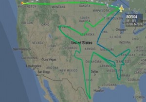 Bugün N7874 tescilli BOE 004 uçuş kodlu bir Dreamliner,  ABD üzerinde izlediği rotayla kendisinin dev bir resmini çizdi.