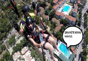 Yamaç paraşütü pilotu İbrahim Altın, şikayete konu olan havuzu ve üzerinden hangi mesafede geçtiklerini gösterdi. Altın, "Alçalırken bir pilot, sadece inişe odaklanır. Çevresindekileri fark etmez" dedi.