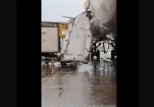 İngiltere Manchester Havalimanı'nda Virgin Atlantic uçağı ikram servisi almaya hazırlanırken yanlışlıkla slide patlatıldı