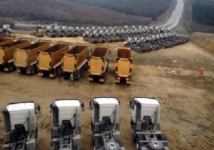İstanbul’a yapılacak yeni havalimanının arazisinde halen zemin düzleştirme ve dolgu çalışmaları sürüyor. Kilometrelerce uzunluktaki dev makine parkı ve aralıksız süren çalışmalarda toplam 767 araç faaliyet gösteriyor. Zemin düzleştirme ve dolgu işlemlerinde Volvo’nun 363 adet dev kamyonu kullanılıyor. Yeni havalimanı için oluşturulan makine parkının maliyeti ise 300 milyon Euro’yu buldu.