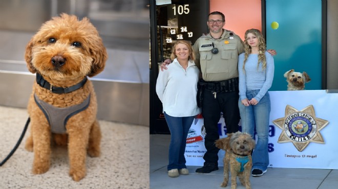 ABD Las Vegas Harry Reid Uluslararası Havalimanı’nda uçağa alınmayınca sahibi tarafından kontuara bağlanarak terk edilen sevimli köpek “Jet Blue”, kendisini kurtaran polis tarafından sahiplenildi
