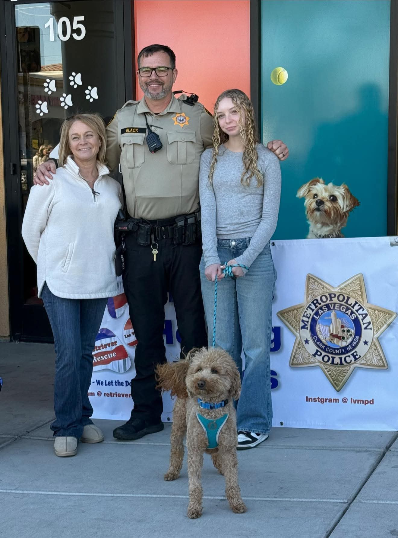 ABD Las Vegas Harry Reid Uluslararası Havalimanı’nda uçağa alınmayınca sahibi tarafından kontuara bağlanarak terk edilen sevimli köpek “Jet Blue”, kendisini kurtaran polis tarafından sahiplenildi. 2 yaşındaki köpek, kurtarma operasyonunda yer alan Las Vegas Metropolitan Polis Departmanı (LVMPD) memuru Skeeter Black ve ailesinin yeni üyesi oldu.