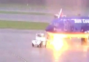 Uçağın kuyruk tarafına isabet eden ve oradan da işçiyi çarpan yıldırımı kayıtta olan kamera böyle kaydetti…