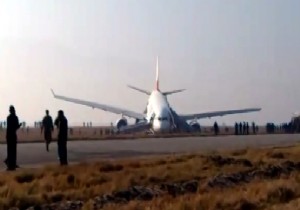 Katmandu'ya iniş sırasında pistten çıkan THY uçağının ilk iniş denemesinde ...