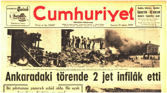 *4.7.1956’da T.H.K’nin Republic F-84 Thunderjet tipi jet uçağı Ankara yakınlarında düşmüş, pilotu ölmüştü.