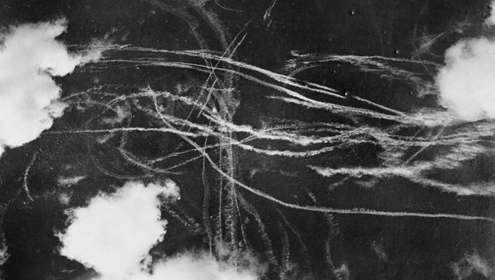 Alman ve İngiliz savaş uçaklarının İngiltere üzerindeki it dalaşı (dogfight) izleri