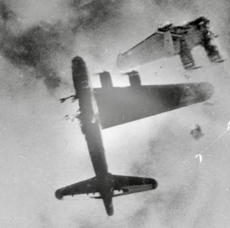 Almanya üzerinde kanadı kopan B-17 bombardıman uçağı